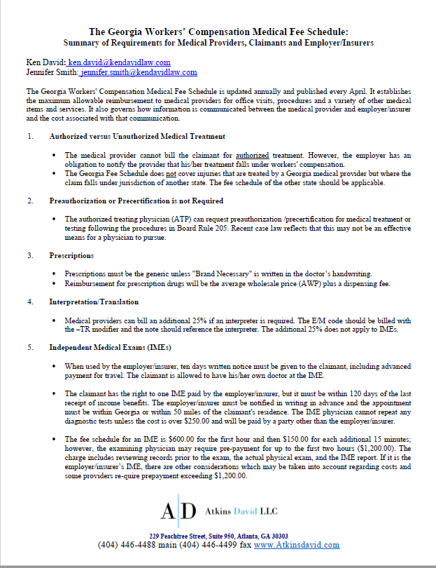 Summary of Requirements for Medical Providers, Claimants and Employer/Insurers by Ken David and Jennifer Smith